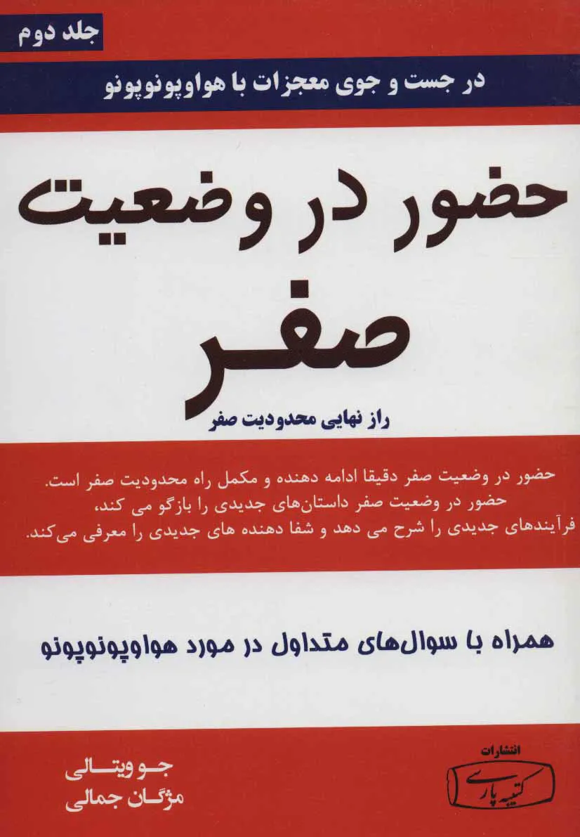 کتاب وضعیت صفر درست از همانجایی آغاز میشود که «حد صفر» پایان یافته بود. در این جلد، نویسنده با بیانی ملموستر، فرآیند جدیدی را معرفی میکند که مرحلهی چهارم بیداری در مسیر هواوپونوپونو است. او نشان میدهد که چگونه میتوانید کنترل زندگی خود را بهدست بگیرید و از نقش قربانی بودن رها شوید.