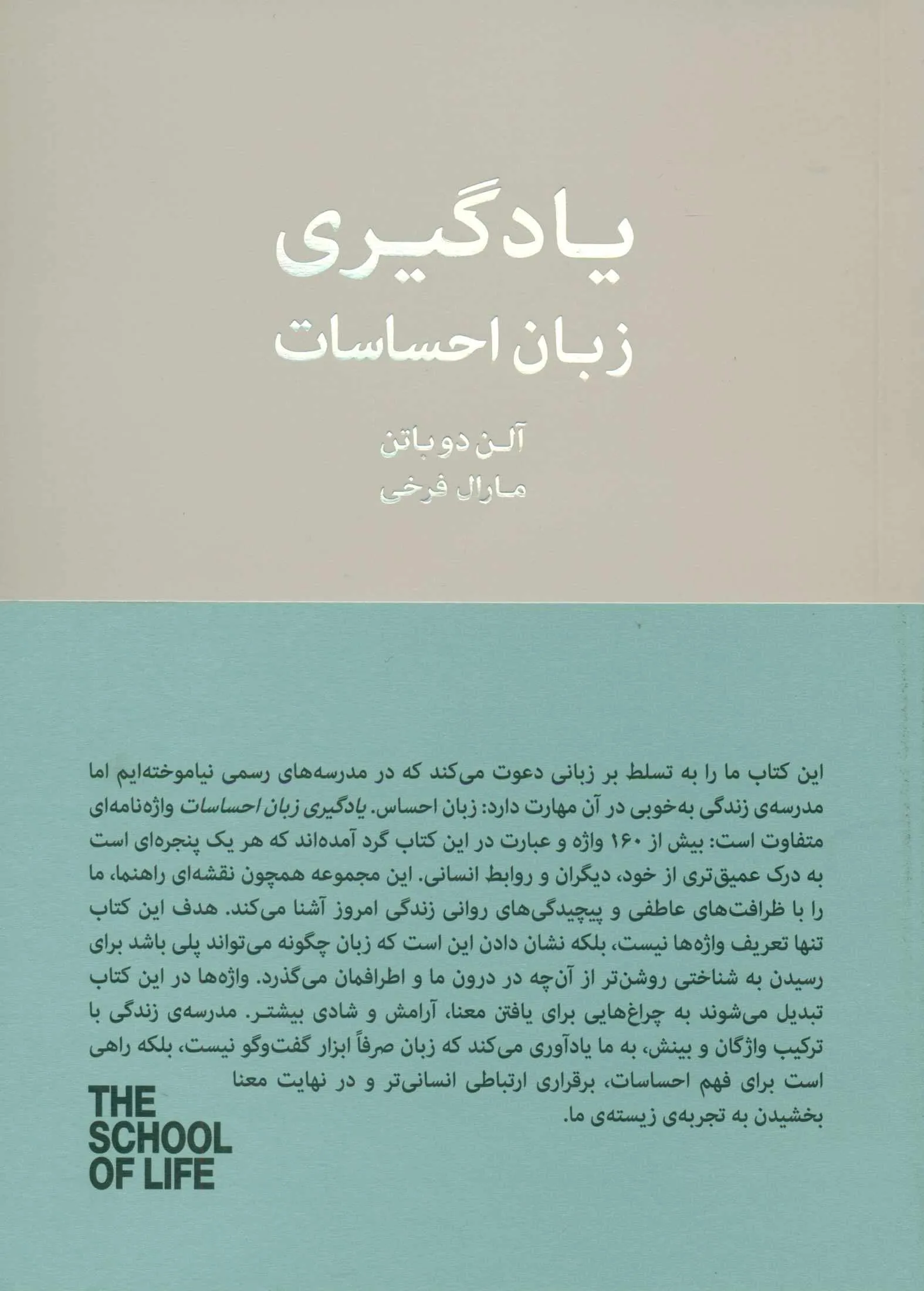 مدرسه‌ی زندگی در این کتاب به ما نشان می‌دهد که زبان تنها وسیله‌ای برای گفت‌وگو نیست، بلکه ابزاری قدرتمند برای درک احساسات عمیق و پیچیده انسانی است. با یادگیری زبان احساسات، می‌توانیم نه‌تنها با دیگران ارتباطی عمیق‌تر داشته باشیم، بلکه خود را نیز بهتر بشناسیم. این کتاب یادآور می‌شود که استفاده درست از واژه‌ها می‌تواند به معنابخشیدن به تجربه‌های زندگی ما کمک کند.
